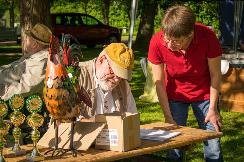 Prämiert wurden wieder die fleissigsten Kräher in den Kategorien Groß- und Zwerghuhnrasssen, wobei der Sieger 108 mal in der Zeit von 9:30 bis 10:30 Uhr seinen Kikeriki abgegeben hatte.