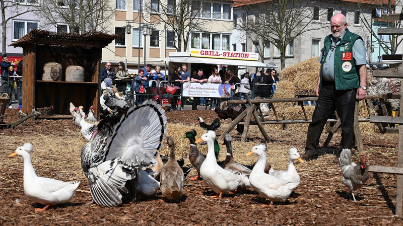 Aber auch der schönste Hahn wurde mit einem Preis ausgezeichnet. Passend dazu konnte man sich mit Soleiern und Bauernfrühstück mit Spiegelei stärken.
